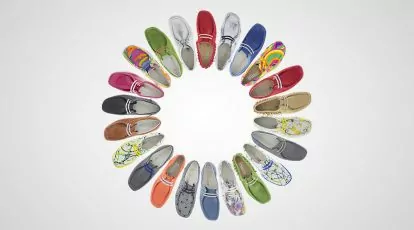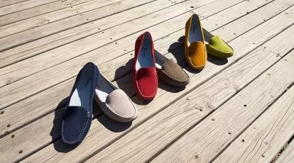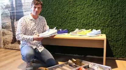 Ein langer Gang, an den Wänden hängen blütenweiße Grashopper-Mokassins. Dazwischen präsentiert sich die neue farbenfrohe Kollektion mit außergewöhnlichen und limitieren Modellen.